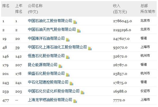 石油天然氣方面,上海龍宇燃油股份有限公司也首次加入500強(qiáng)陣營,位居第477位。
