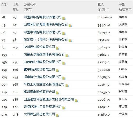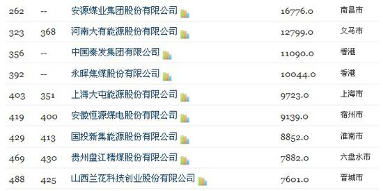 煤炭企業(yè)中,內(nèi)蒙古伊泰煤炭股份有限公司(第153位)、安源煤業(yè)集團(tuán)股份有限公司(第262位)、中國秦發(fā)集團(tuán)有限公司(第356位)、永暉焦煤股份有限公司(第392位)、永泰能源股份有限公司(第480位)五家公司,首次入圍今年的榜單。