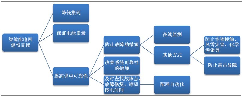 智能配電網(wǎng)的建設目標包括三個方面:降低損耗、保證電能質(zhì)量和供電可靠性。其中電能質(zhì)量與損耗是相互的,損耗往往伴隨著電壓質(zhì)量的下降;所以實際上智能配電網(wǎng)的目標為提高電能質(zhì)量和提升供電可靠性。